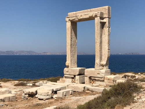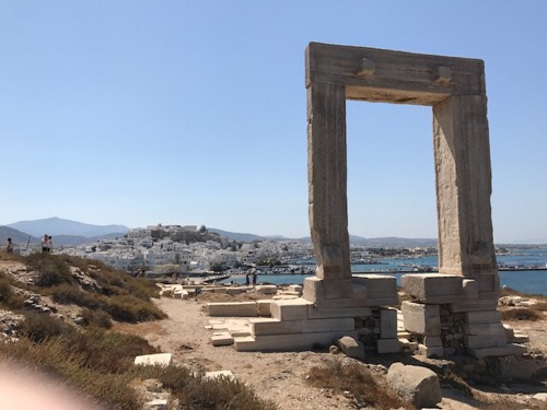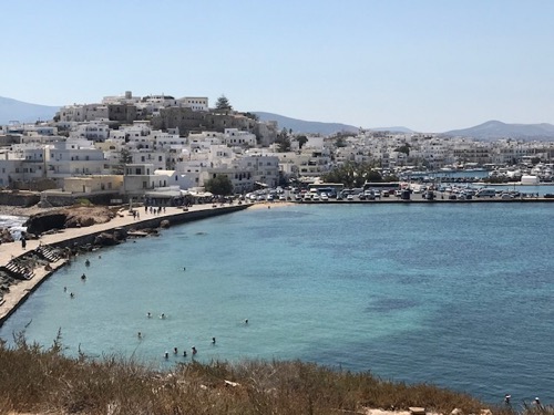 The five photos below the stylish cap are of downtown Naxos before we left for Santorini.