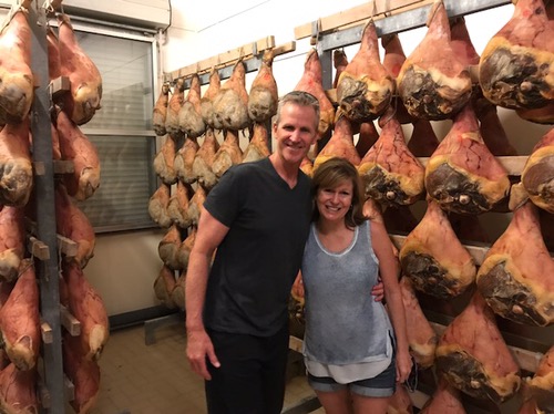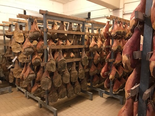 Visited a family run prociutto company. Crazy pig legs everywhere. Hanging for three years before they sell. Had lunch at La Lanterna and was served four different kinds of ravioli. Pumpkin, potato, spinach and mushroom.