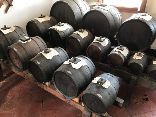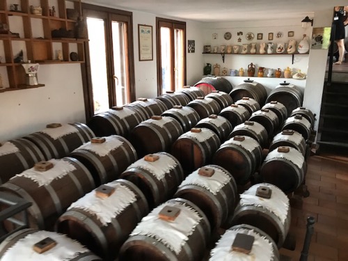 The BV is switched from different barrels each year and cannot be sold as BV under their label and consortium until it has aged 12 years in 5 different types of wood barrels. Barrels are kept not remade every 3 years like wine. Some barrels in the pictures are 100-200+ years old. One barrel we saw has 60 year old aging BV inside it.