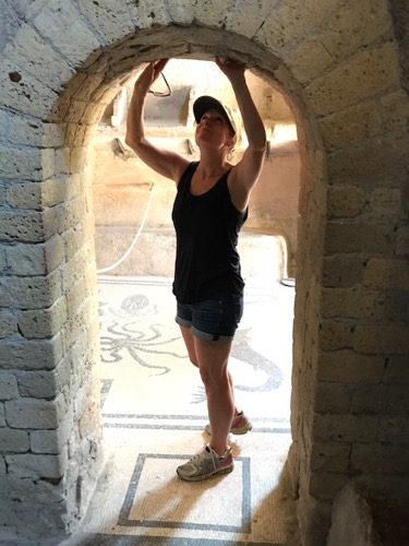 What makes Herculaneum more interesting is that it was buried by 60 feet of lava preserving the town better and Pompeii. While Pompeii has a larger area excavated, most of the preservation is just in the lower walls.